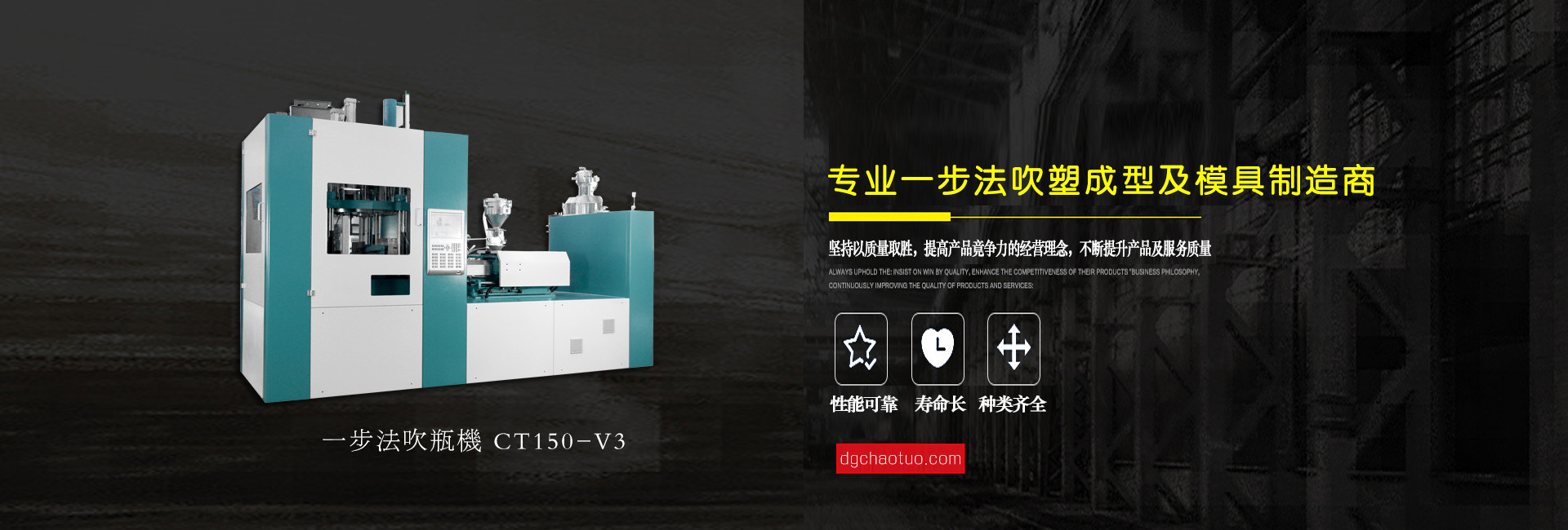 東莞超拓機(jī)械有限公司是一家專業(yè)設(shè)計(jì)生產(chǎn)一步法注吹機(jī)及相關(guān)配套模具的制造企業(yè), 公司自成立至今,始終以市場為導(dǎo)向、科技為基礎(chǔ)、質(zhì)量第一、用戶至上為服務(wù)宗旨,并一直在跟進(jìn)和學(xué)習(xí)世界上先進(jìn)的“注拉吹”中空成型技術(shù)專業(yè)領(lǐng)域配件制造和檢驗(yàn)技術(shù),不斷地創(chuàng)新求異,其中PPSU奶瓶領(lǐng)先國內(nèi)同行業(yè),堅(jiān)持“超越拓展,品質(zhì)保證”的企業(yè)文化理念,為客戶提供上乘服務(wù)。公司總經(jīng)理姜業(yè)東攜全體員工衷心感謝新老客戶的支持和關(guān)愛,竭誠歡迎各位朋友蒞臨指導(dǎo)與合作,共圖發(fā)展。